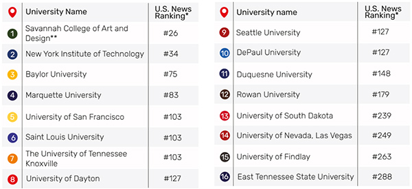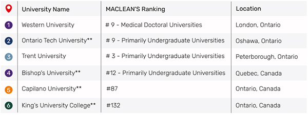 Выпускникам ACCP Pathway гарантирован переход на второй курс следующих университетов США и Канады (список вузов и положение в рейтинге):