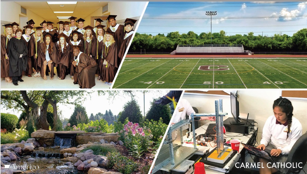 Расположенная в живописном кампусе площадью 50 акров в прекрасном Чикаго-Норт-Шор в Иллинойсе, Carmel Catholic High School предоставляет студентам возможность получать знания и развить свои навыки во всех возможных областях. В этой частной школе учащиеся имеют доступ к 100 различным образовательным курсам - от "разработки мобильных приложений" до "международного бизнеса". Студенты также могут принять участие в работе 80 различных научных и спортивных клубов на кампусе.
